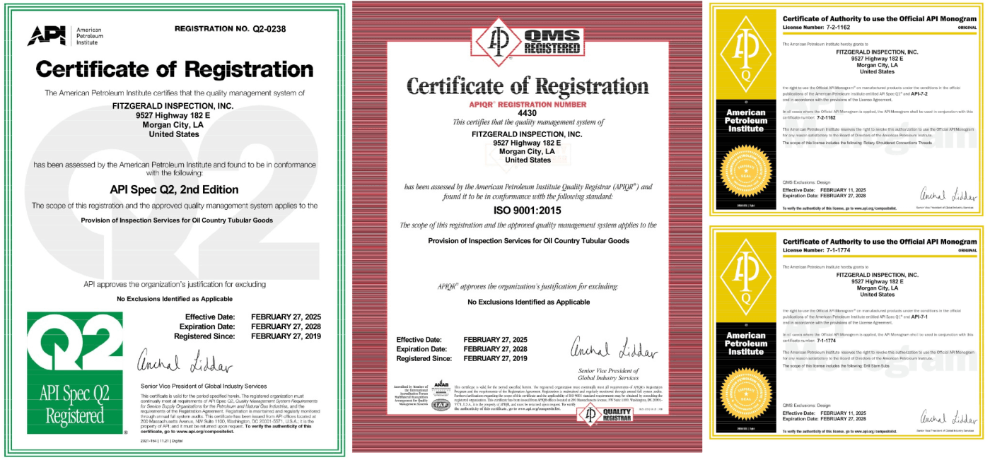 Fitzgerald Inspection, Inc. maintains an in-house ASNT NDT Level III certified in the methods of Magnetic Particle Testing, Liquid Penetrant Testing, Ultrasonic Testing and Visual Testing. The ASNT NDT Level III is responsible for training all NDT Level II inspectors as well as establishing and signing off on all pertinent NDT related procedures and API Q2 Quality Management System.